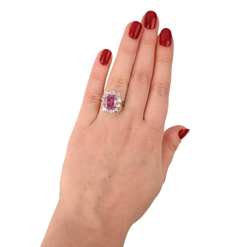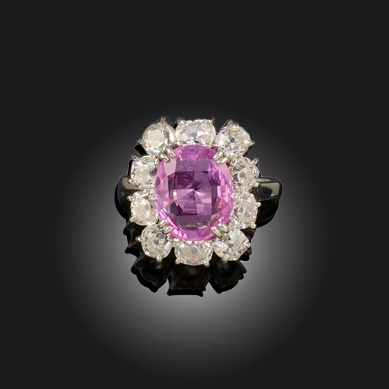 A FRENCH PINK SAPPHIRE AND DIAMOND CLUSTER RING