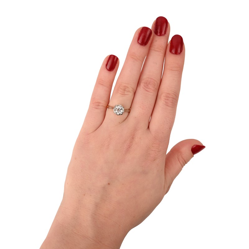 A DIAMOND SOLITAIRE RING, the old circular-cut diamond weighing approximately 0.60cts, in platinum and gold, size M