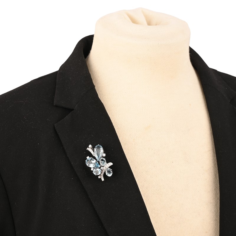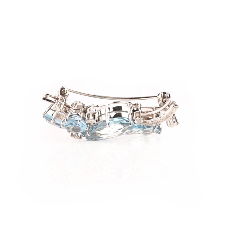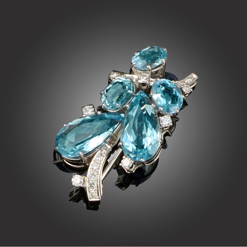 AN AQUAMARINE AND DIAMOND BROOCH