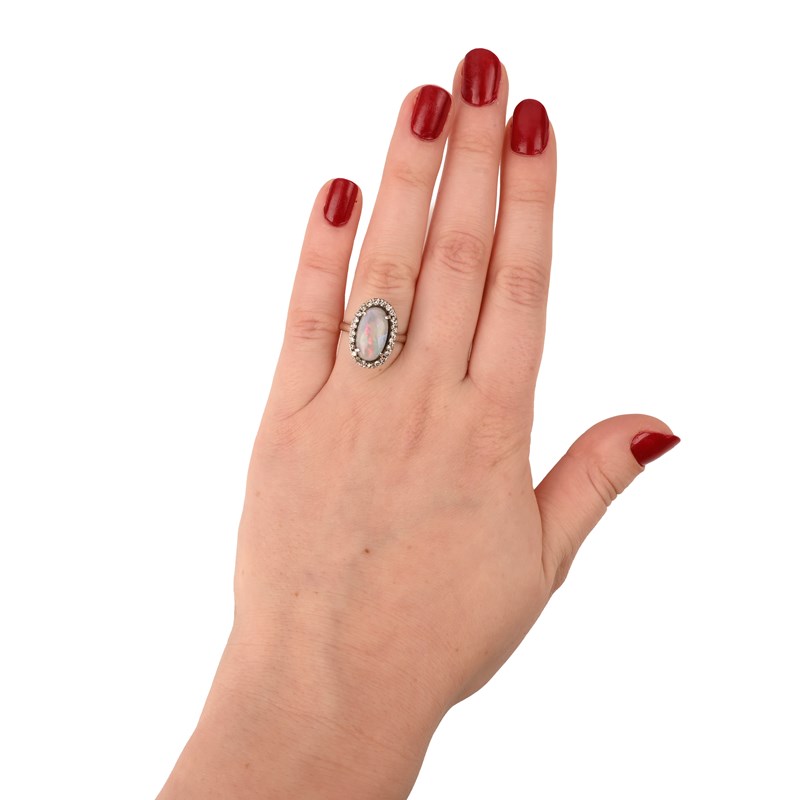 AN OPAL AND DIAMOND CLUSTER RING