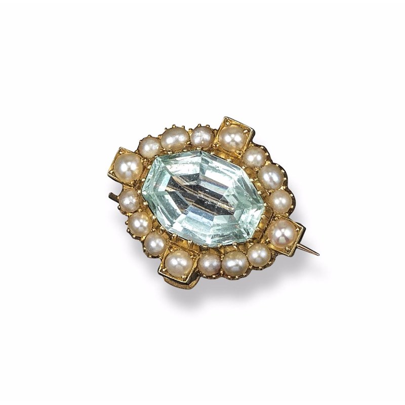 A late 19th century seed pearl and aquamarine brooch
