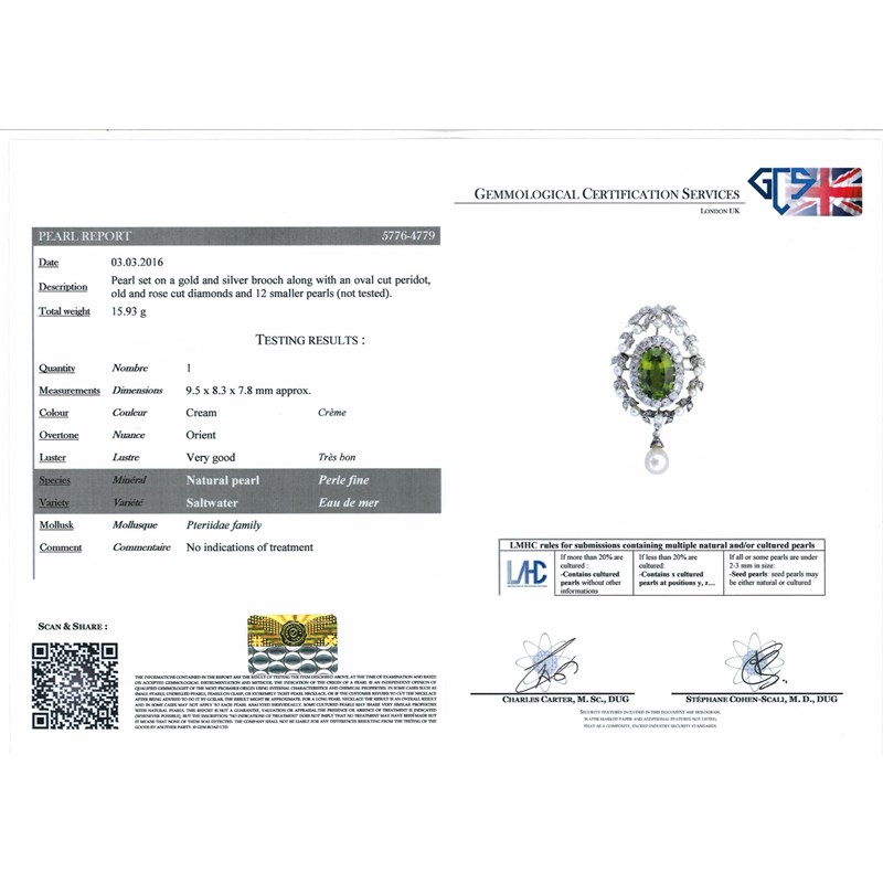 Accompanied by report number 5776-4779 dated 3rd March 2016 from GCS, London stating that the pearl measures 9.5 x 8.3 x 7.8mm and is a natural saltwater pearl with no indications of treatment.