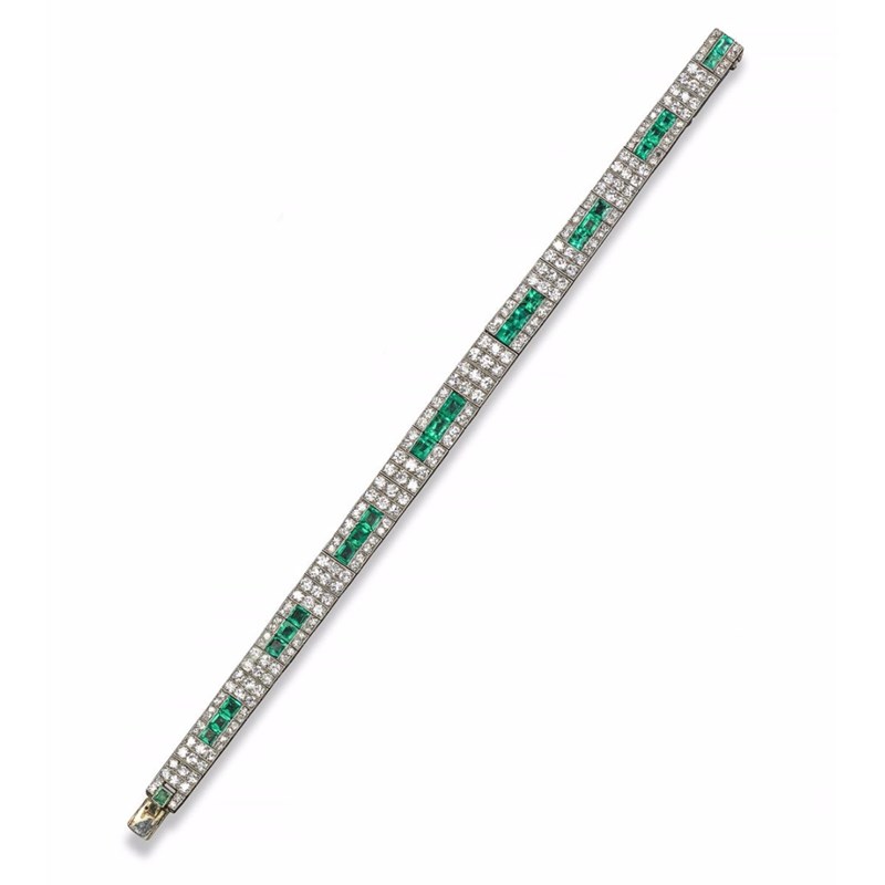 An early 20th century emerald and diamond bracelet