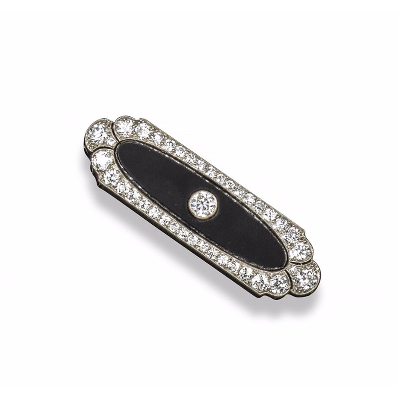 An Art Deco onyx and diamond brooch