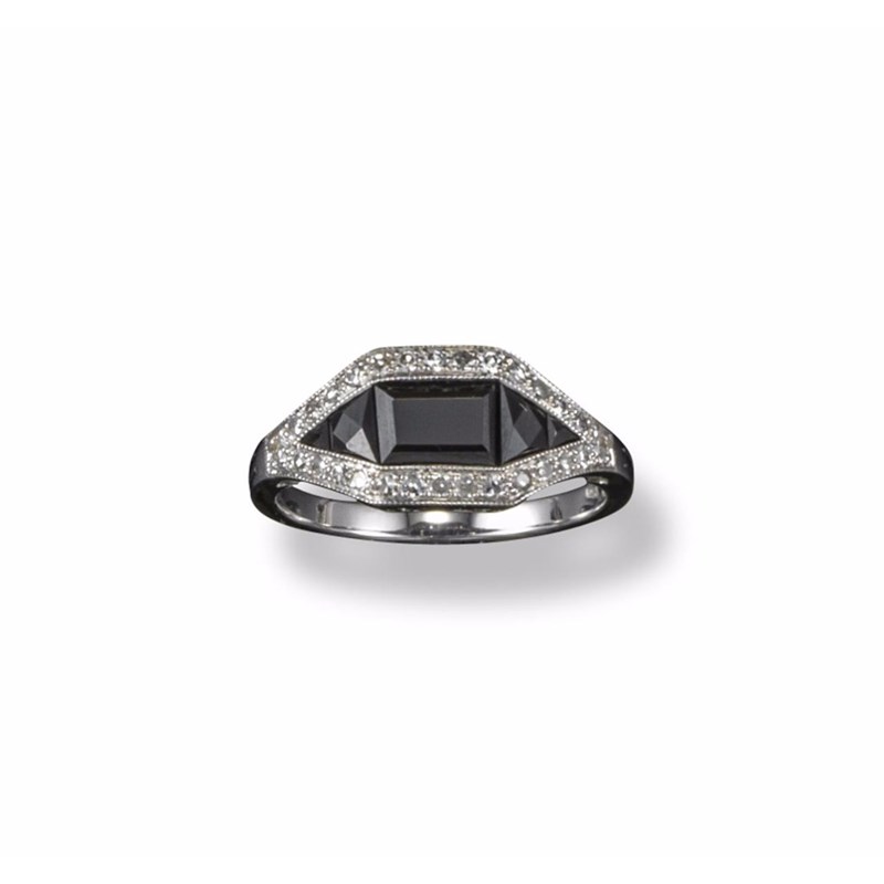 A diamond and black onyx half hoop ring
