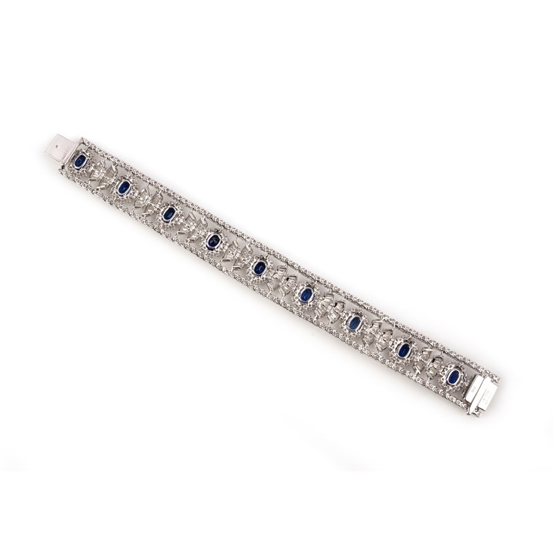 A sapphire and diamond bracelet, set with oval-shaped sapphires within diamond surrounds separated