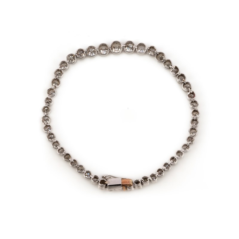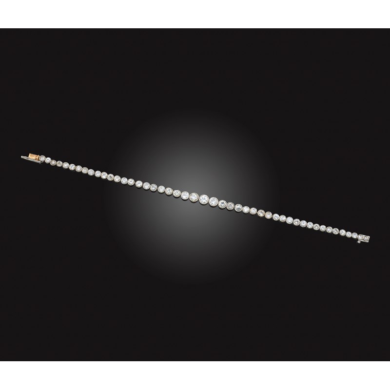 A diamond line bracelet, set with graduated circular-cut diamonds rubover-set in platinum, length 17cm
