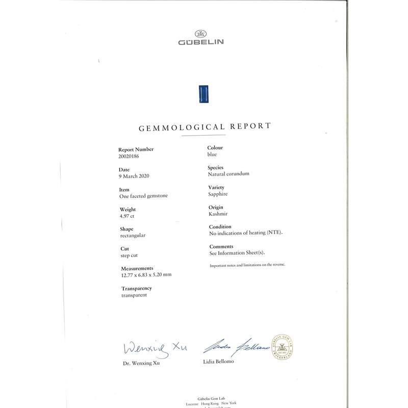 Accompanied by report number 20020186 dated 9th March 2020 from Gubelin stating that the sapphire shows no indication of heating, origin: Kashmir