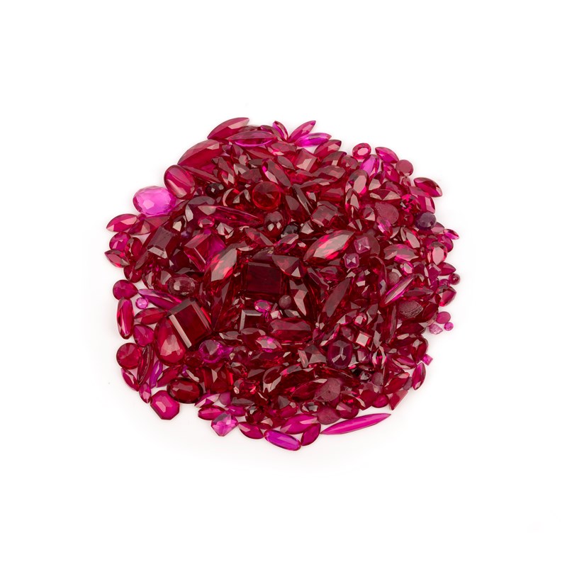 A large parcel of synthetic rubies, of various shapes totalling approximately 1700 carats