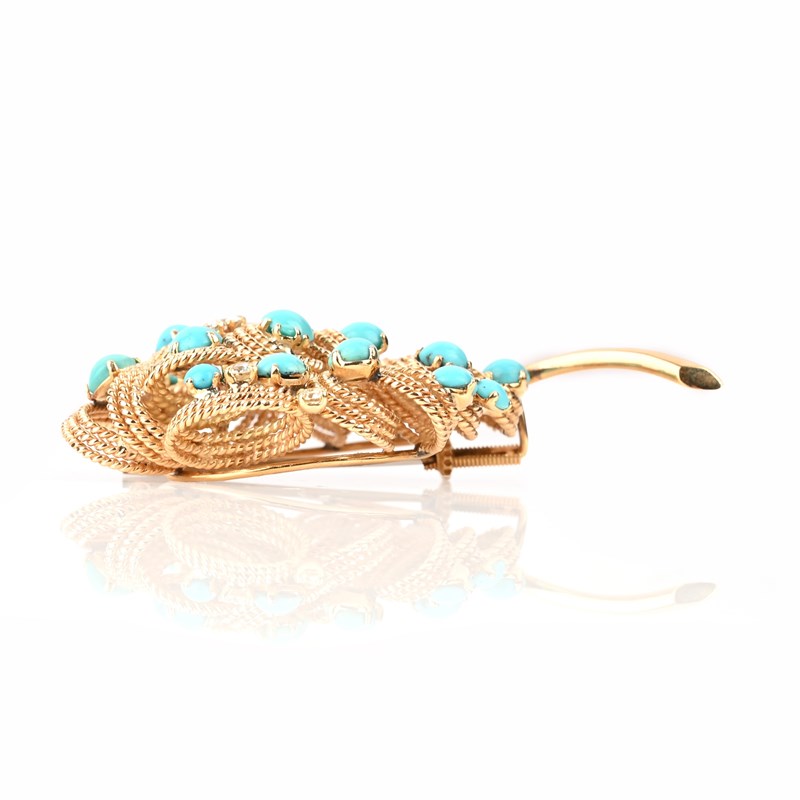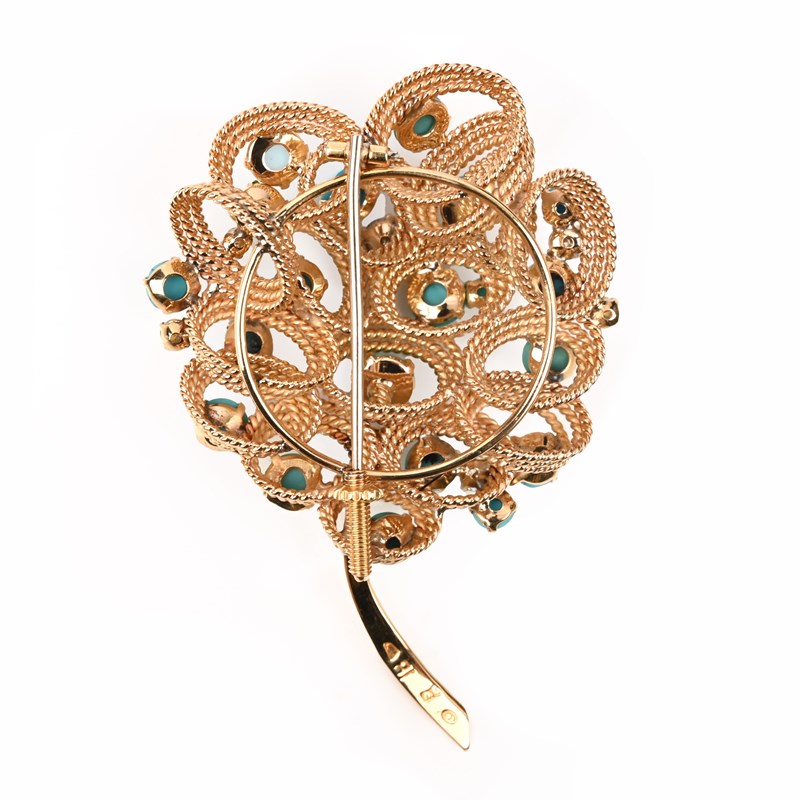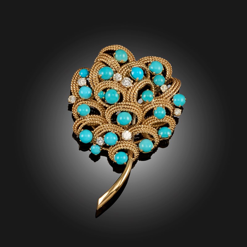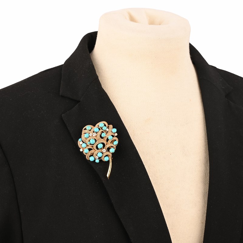 A TURQUOISE AND DIAMOND-SET GOLD BROOCH