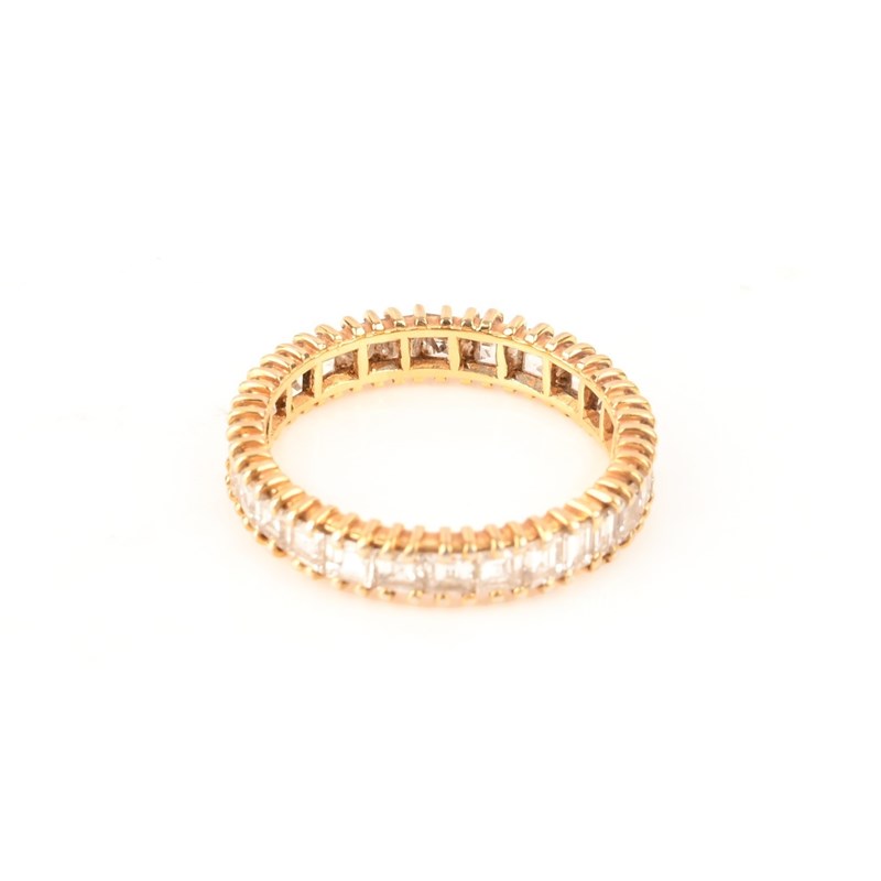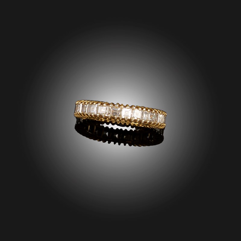 A DIAMOND FULL CIRCLE ETERNITY RING, claw-set with carré-cut diamonds, in yellow gold, size R 1/2