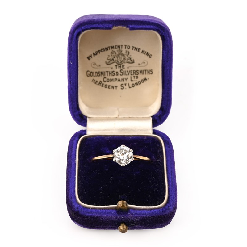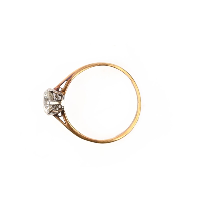 A DIAMOND SOLITAIRE RING, set with a round brilliant cut diamond weighing approximately 1.00cts, mounted in platinum and gold, size S, case