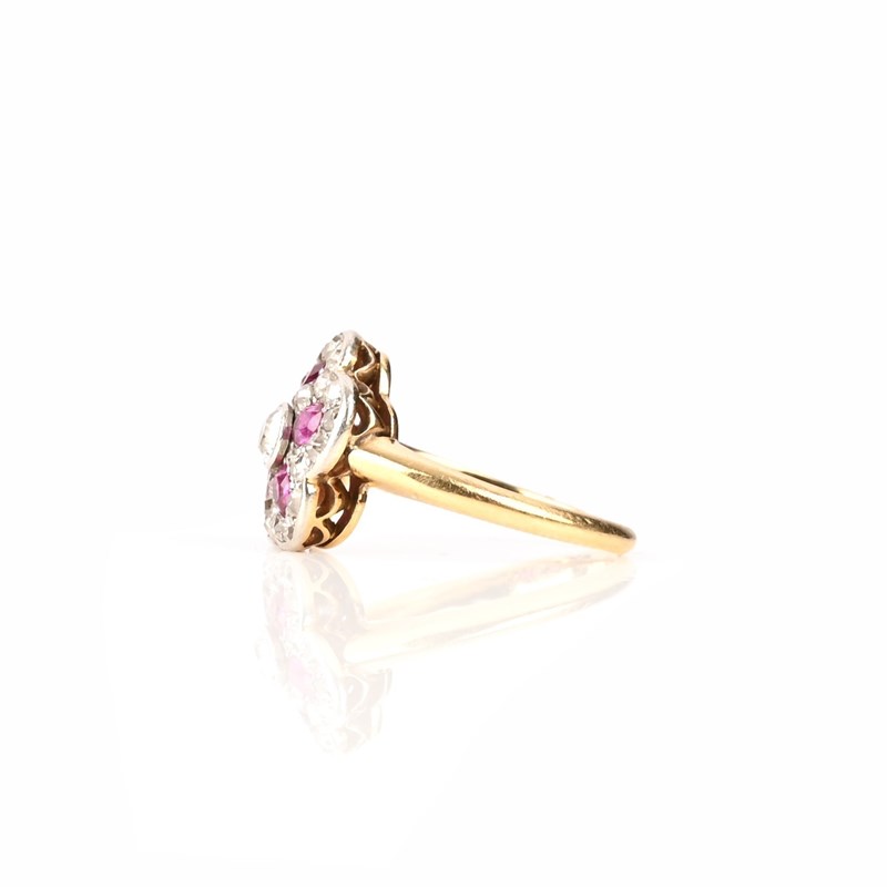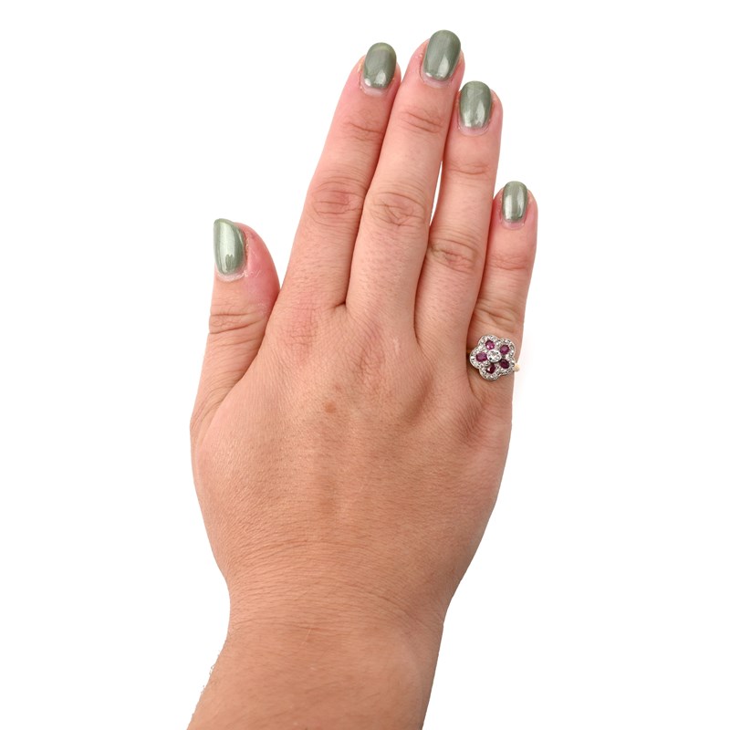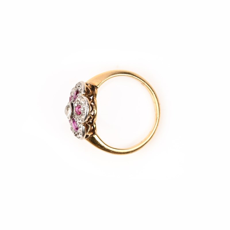 A RUBY AND DIAMOND FLOWERHEAD RING