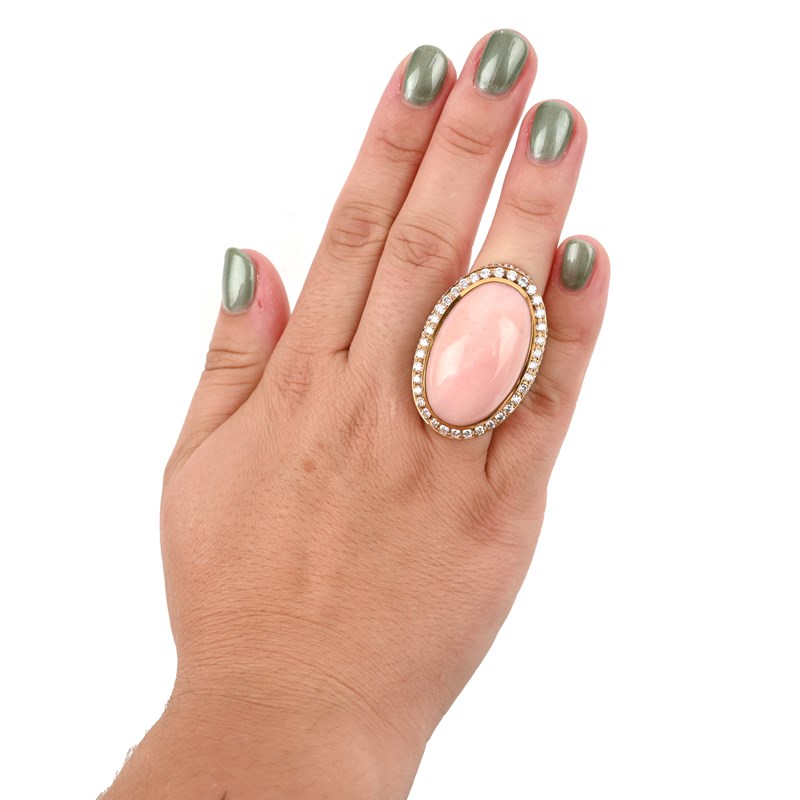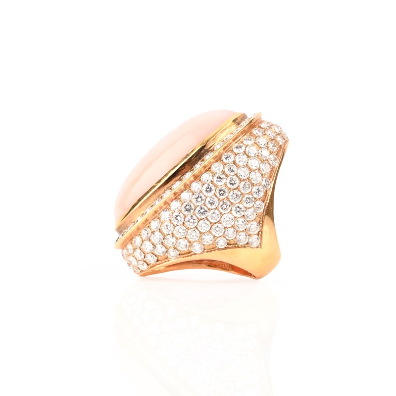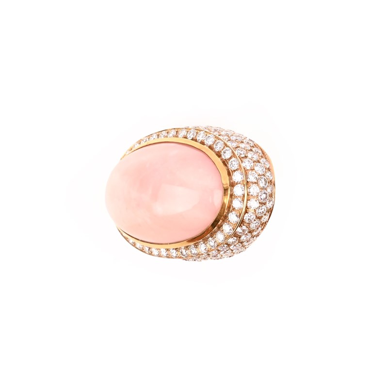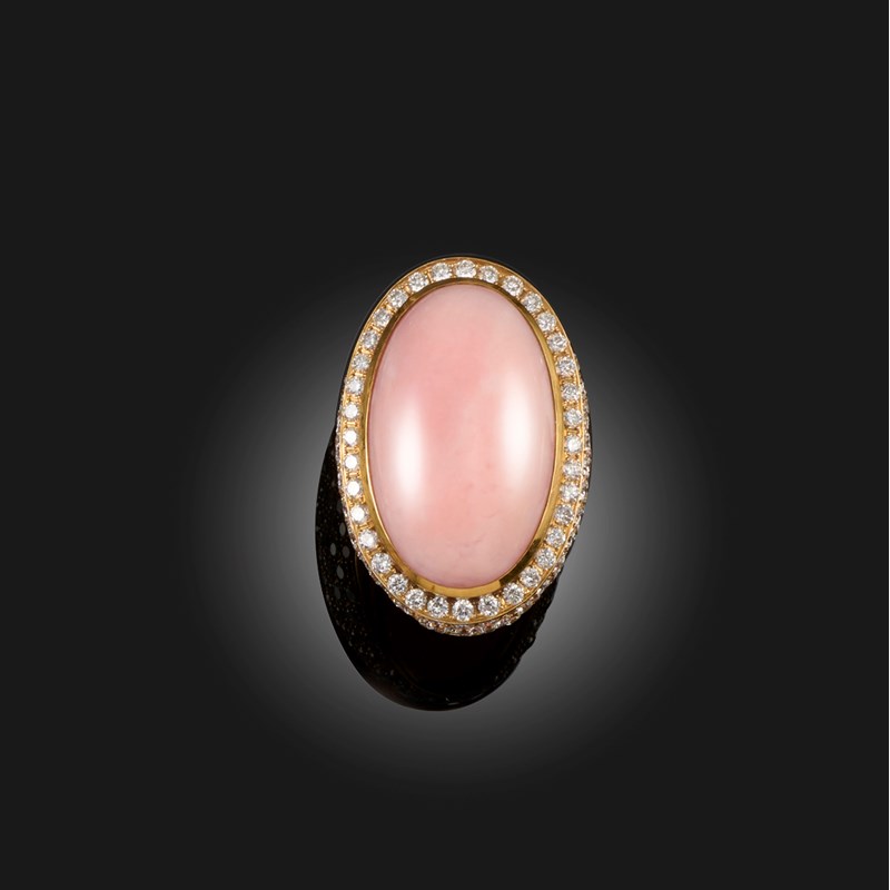 A PINK OPAL AND DIAMOND DRESS RING