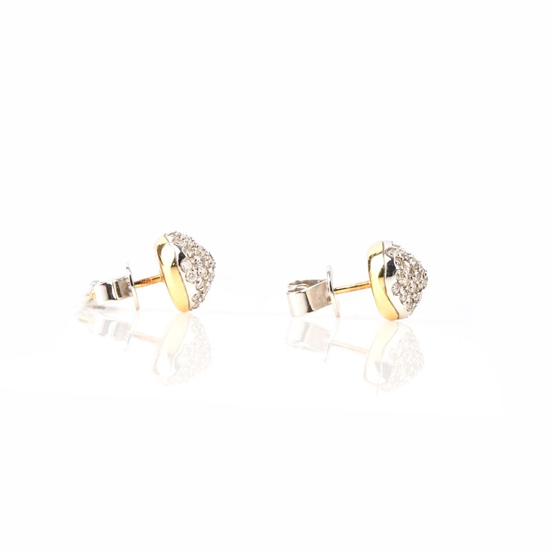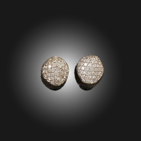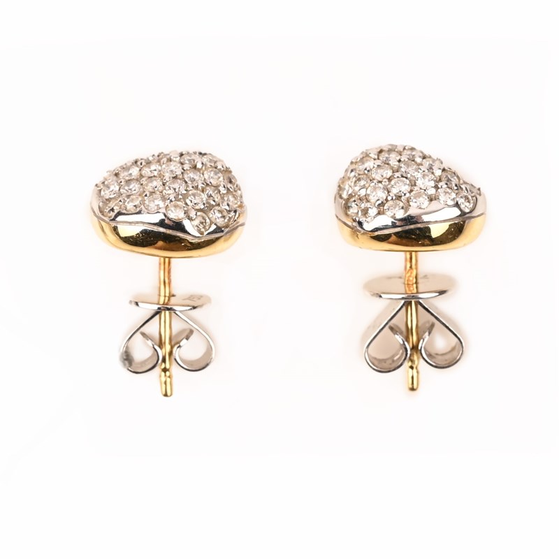 A PAIR OF DIAMOND EAR STUDS, pavé-set with round brilliant-cut diamonds, in gold, stamped 750, width 1cm, gross weight 4g