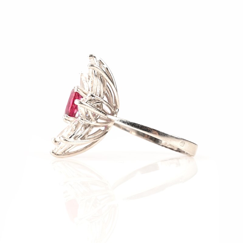 A RUBY AND DIAMOND CLUSTER RING