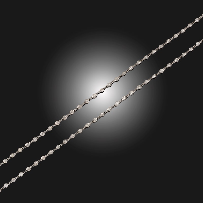 A DIAMOND SET WHITE GOLD CHAIN, set with round brilliant-cut diamonds in spectacle white gold settings, stamped 750, length 59cm