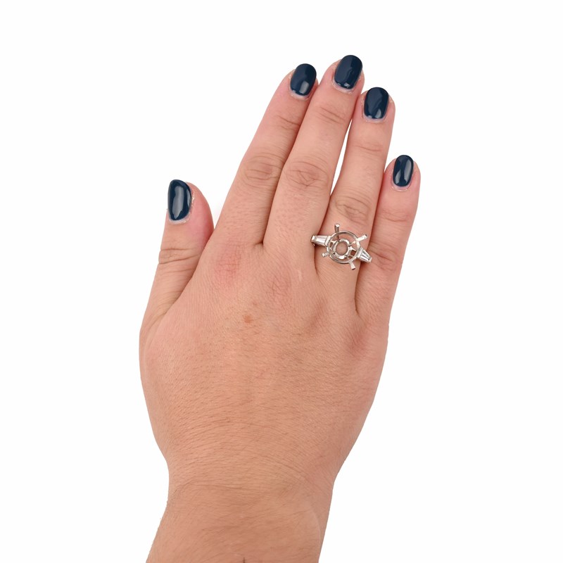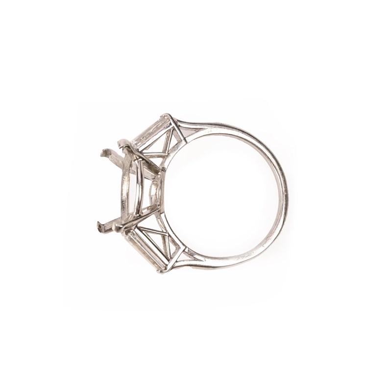 A DIAMOND RING MOUNT, set with a tapering baguette-shaped diamond to each shoulder, in platinum, stamped Pt, size M 1/2