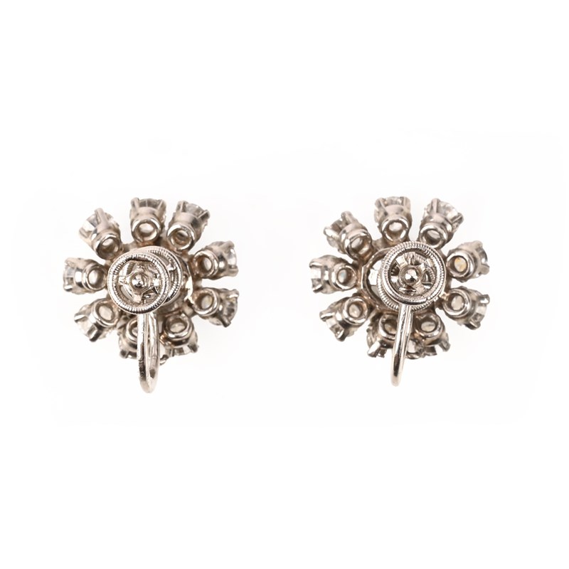 CARTIER, A PAIR OF DIAMOND EARRING MOUNTS, of cluster design, each set with a border of round brilliant-cut diamonds, mounted in platinum, one indistinctly signed Cartier, French control marks and maker's marks, screw fittings, width 1.5cm