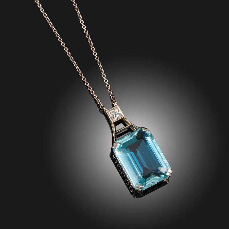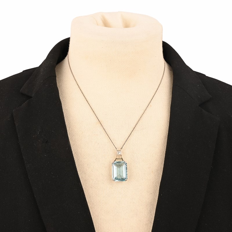 AN AQUAMARINE AND DIAMOND PENDANT NECKLACE
