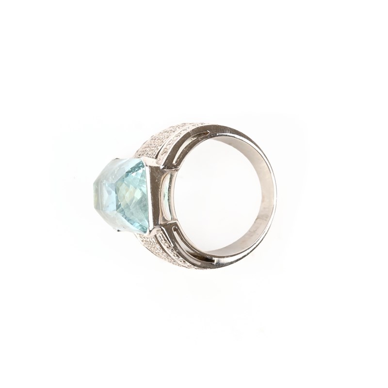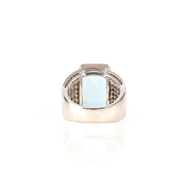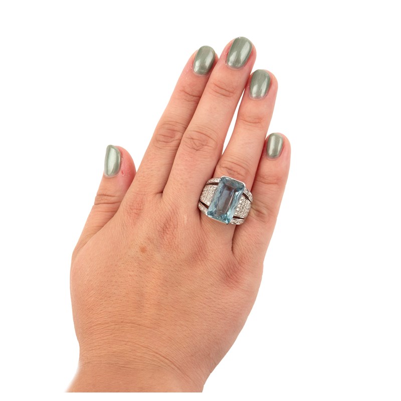 AN AQUAMARINE AND DIAMOND DRESS RING