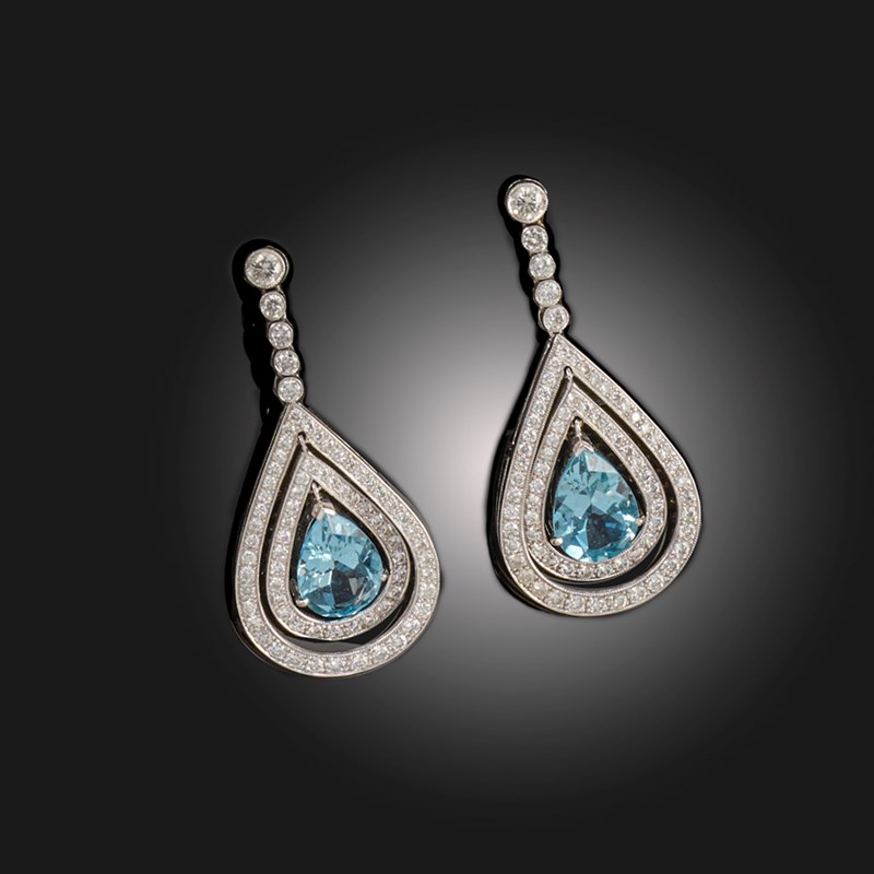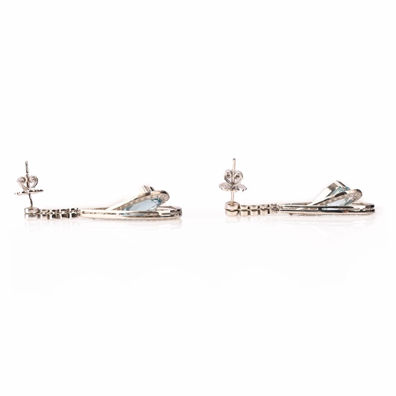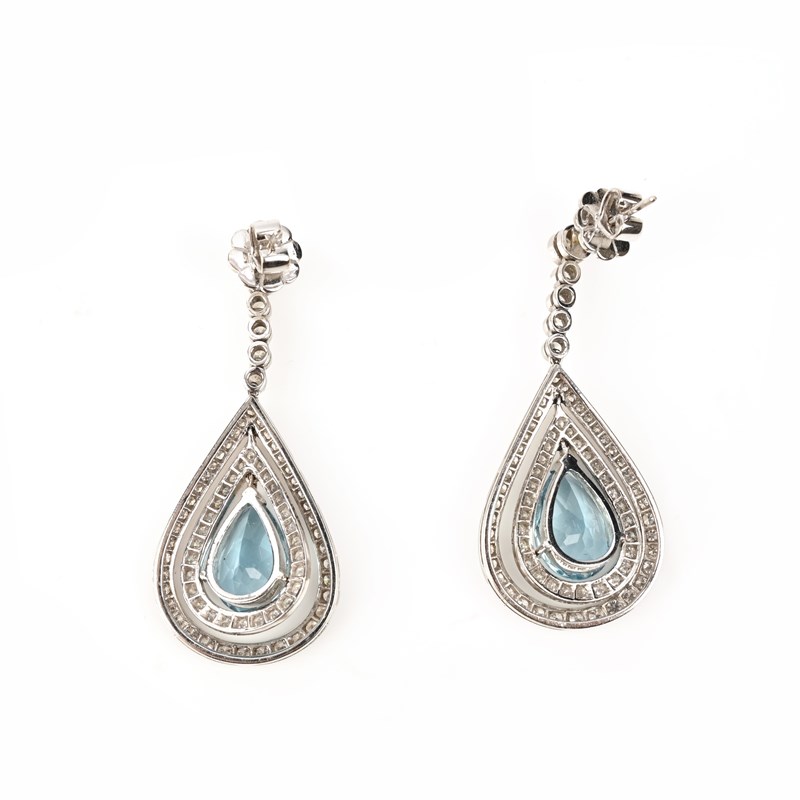 A PAIR OF AQUAMARINE AND DIAMOND EARRINGS