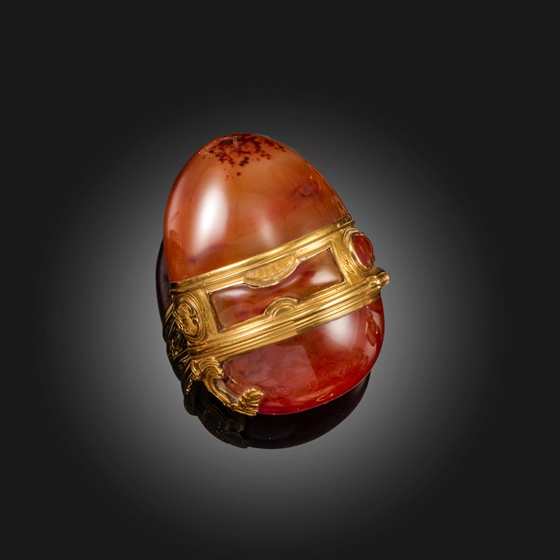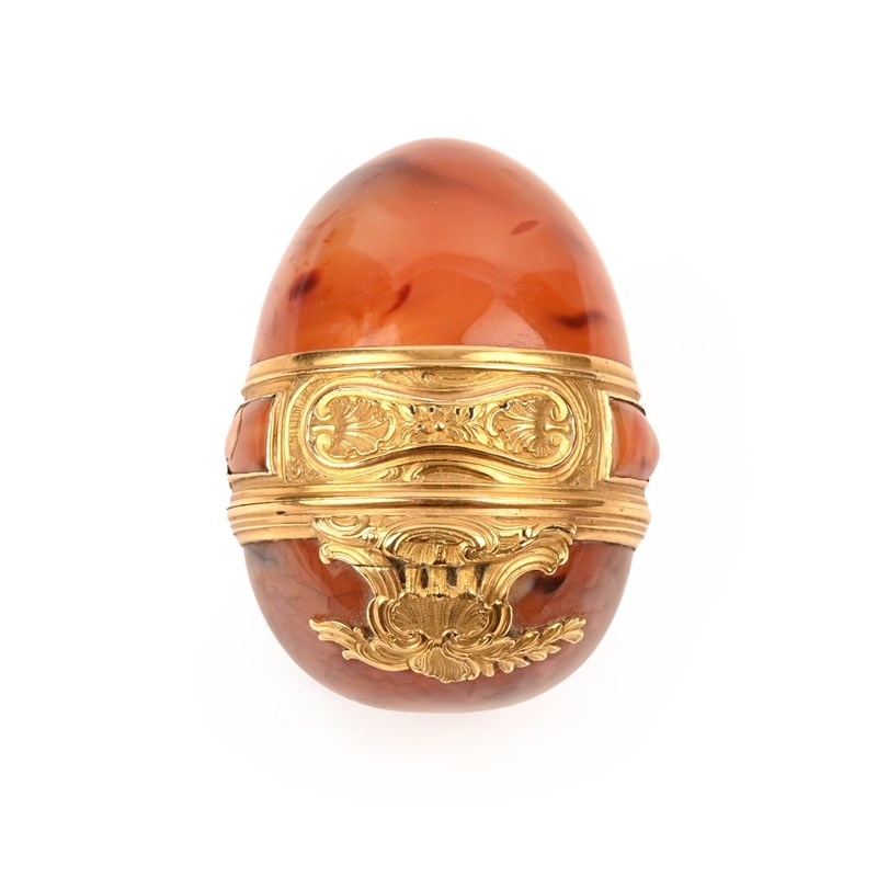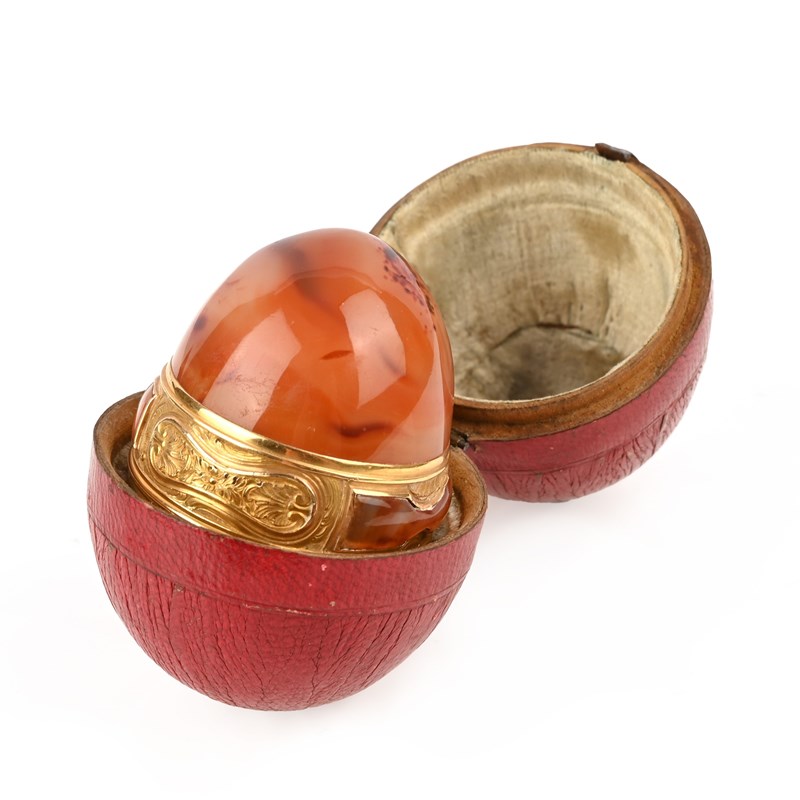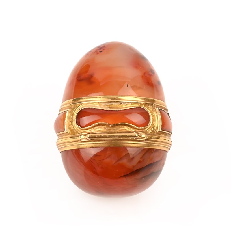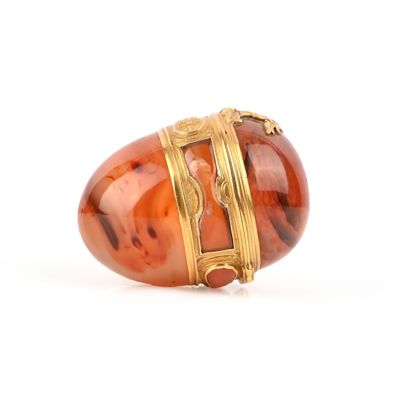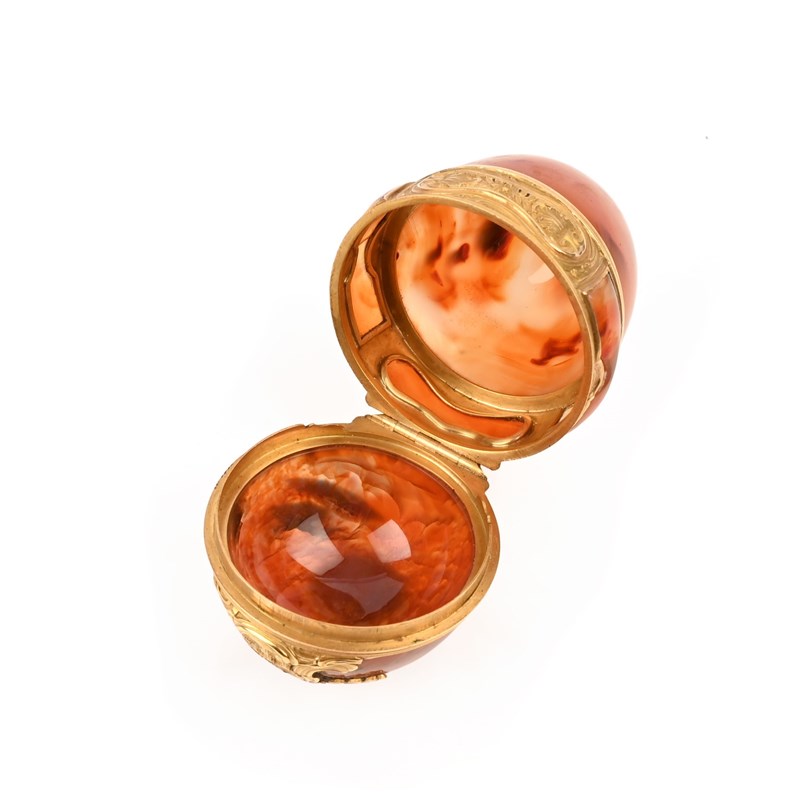 AN 18TH CENTURY AGATE AND GOLD OVIFORM BONBONNIÈRE