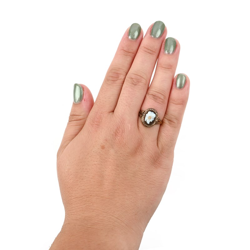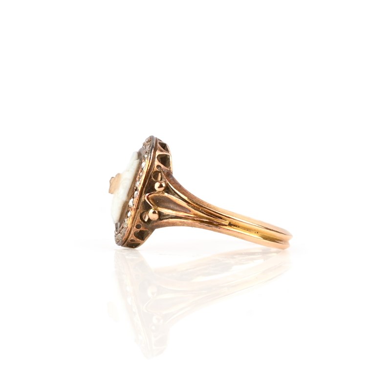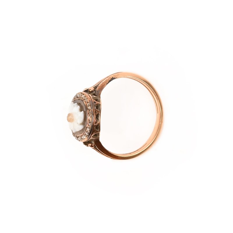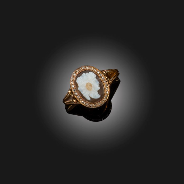 AN EARLY 19TH CENTURY BANDED AGATE CAMEO AND DIAMOND RING