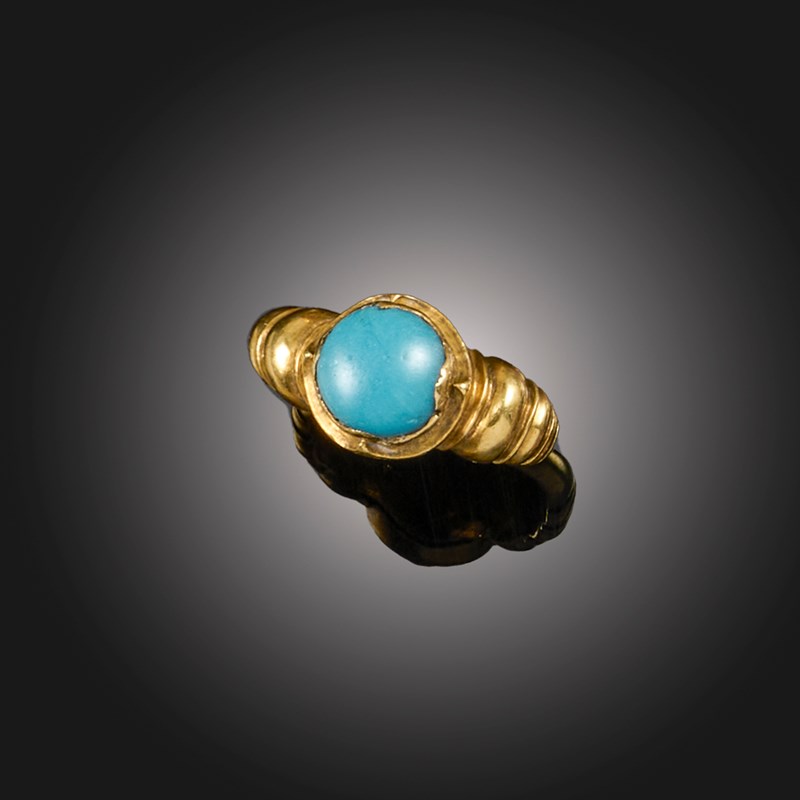 A TURQUOISE AND GOLD RING, JAVA, 8TH-12TH CENTURY