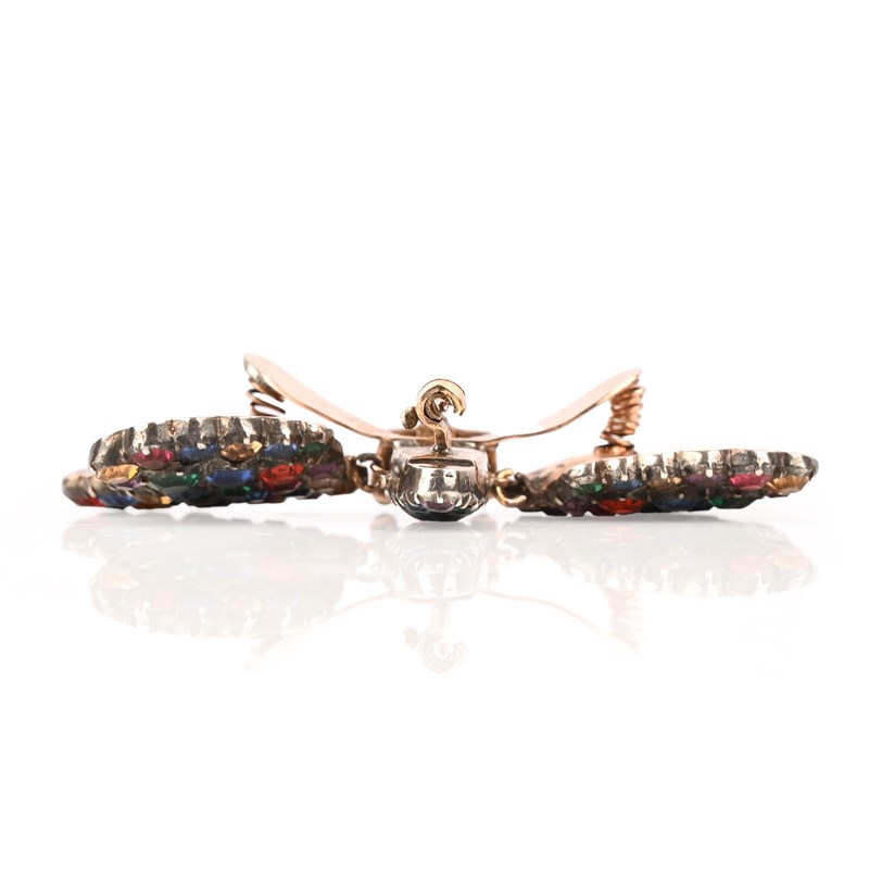 A GEORGE III HARLEQUIN PASTE BUTTERFLY BROOCH, the wings pavé-set with multicoloured paste and mounted en tremblant in silver and gold, width 5.2cm