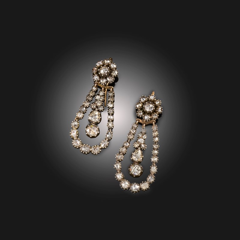 A PAIR OF GEORGE III DIAMOND DROP EARRINGS, EARLY 19TH CENTURY