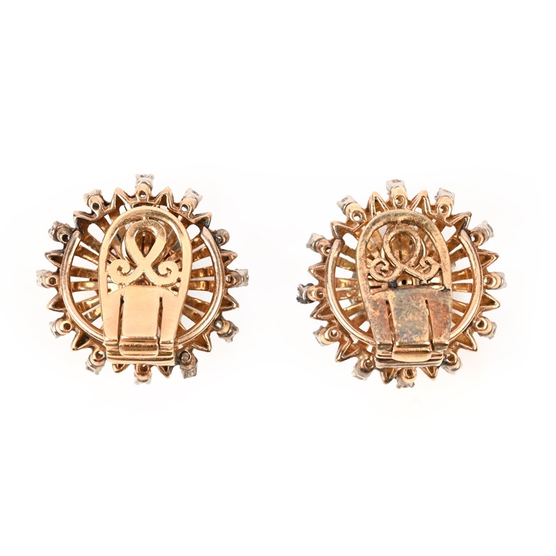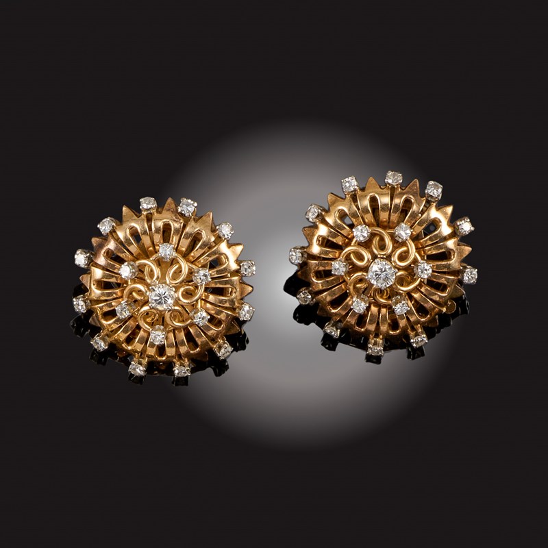 A PAIR OF DIAMOND-SET GOLD EARCLIPS