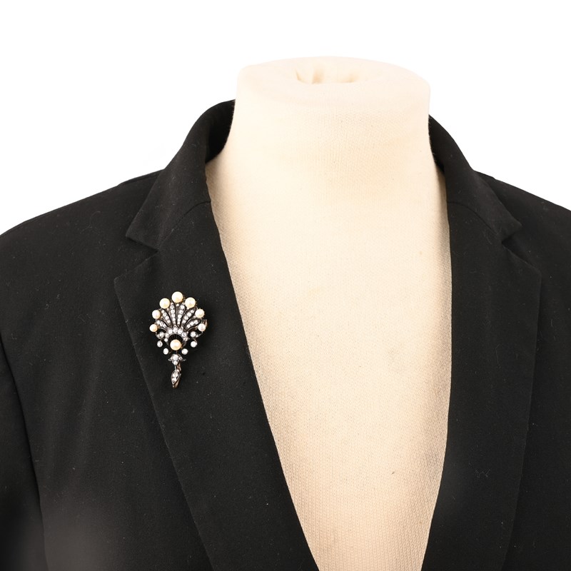 A VICTORIAN PEARL AND DIAMOND BROOCH PENDANT