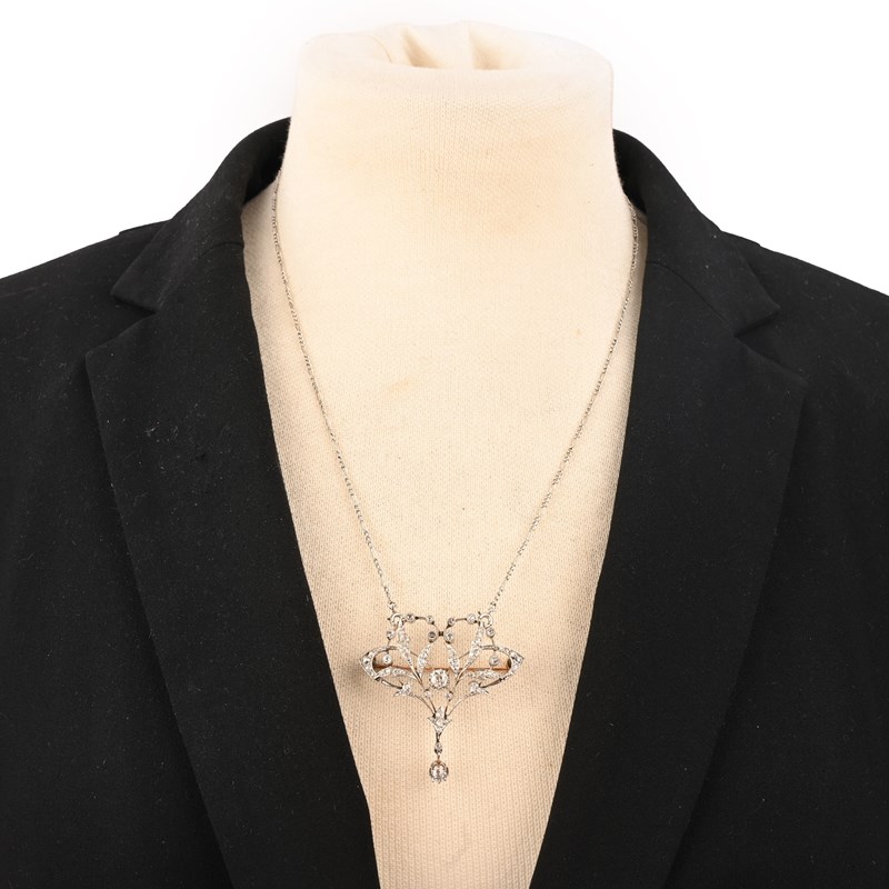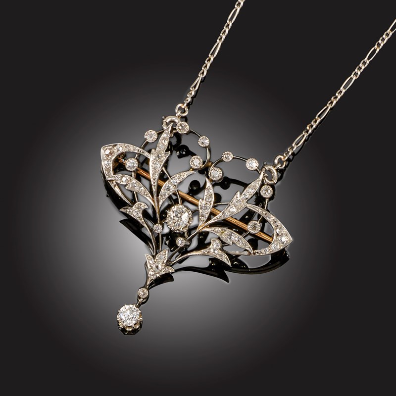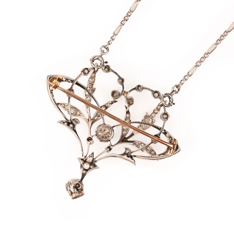 AN ART NOUVEAU DIAMOND BROOCH PENDANT