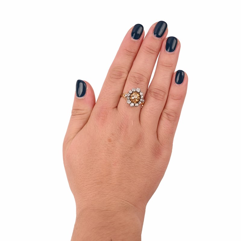 A FRENCH BROWN AND WHITE DIAMOND CLUSTER RING