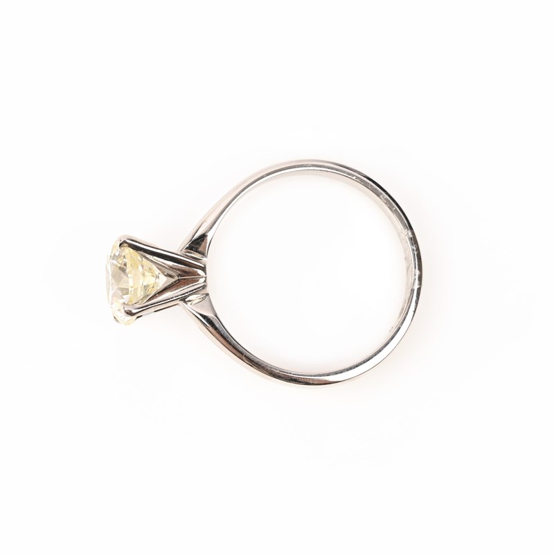 A DIAMOND SOLITAIRE RING, the round brilliant-cut diamond weighing approximately 1.55cts, in platinum, Birmingham hallmarks, size M 1/2