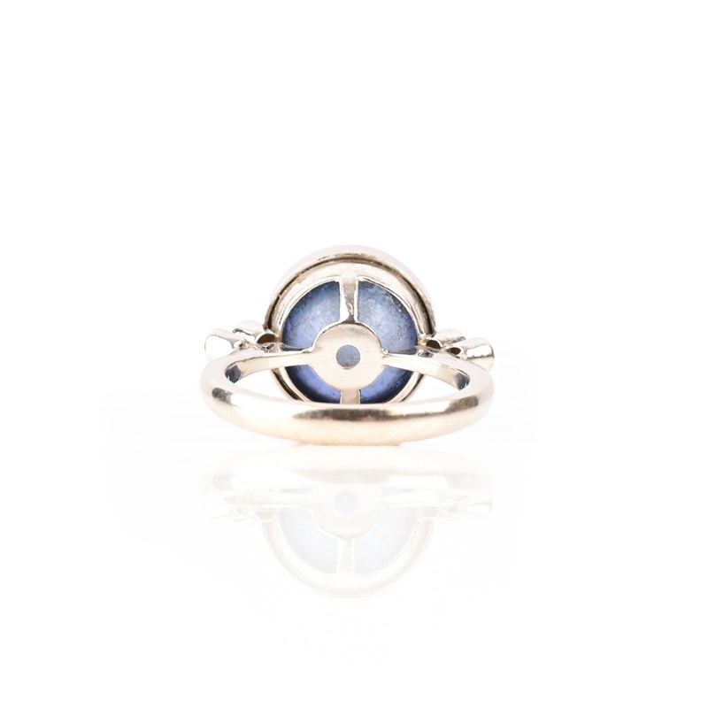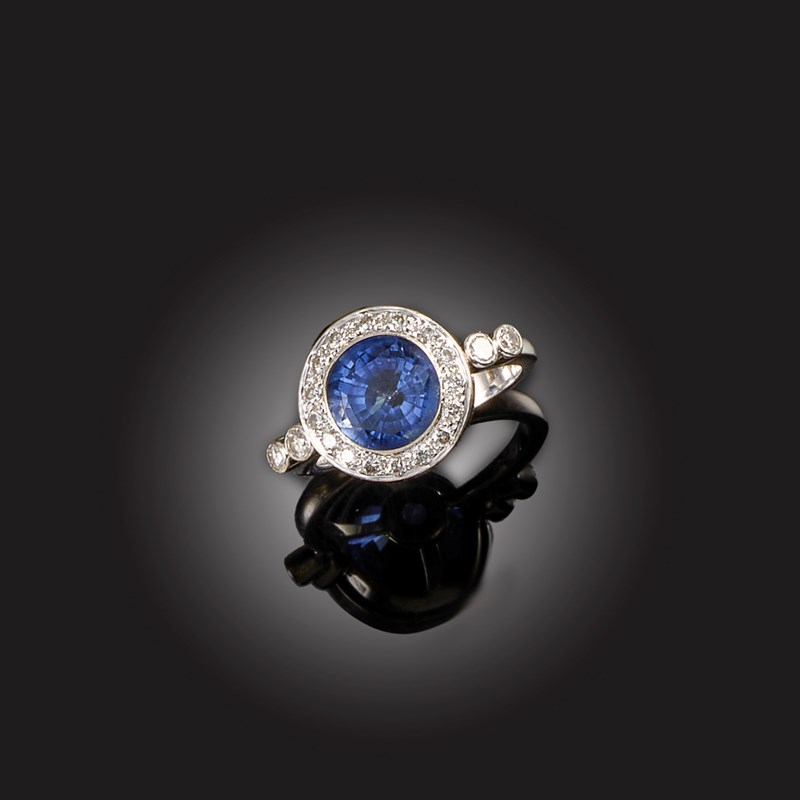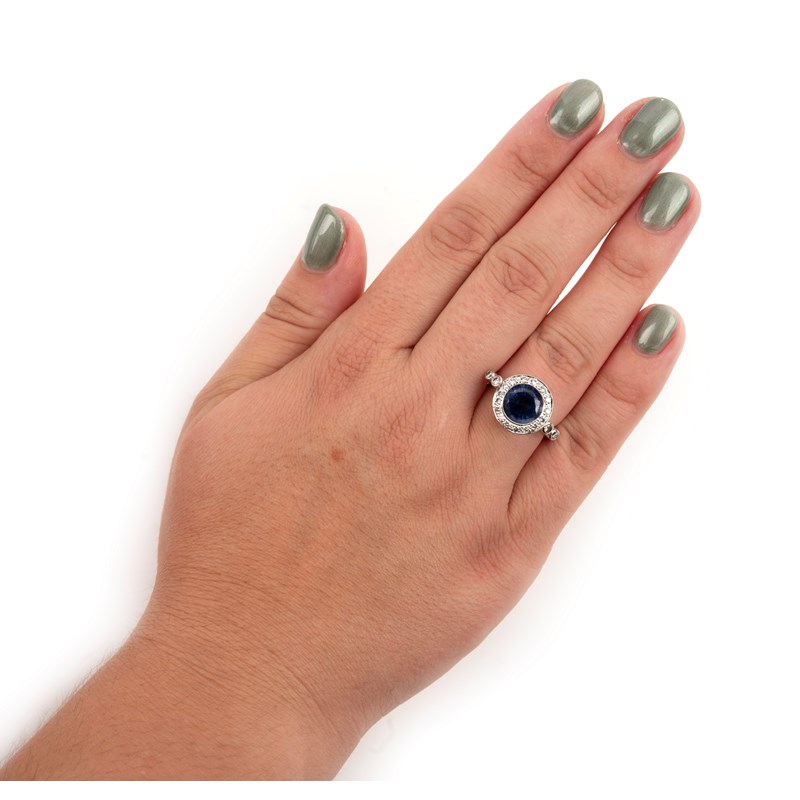 A SAPPHIRE AND DIAMOND CLUSTER RING