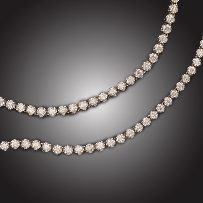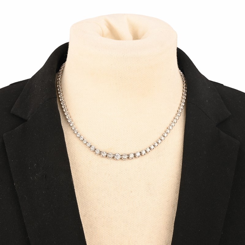 A DIAMOND RIVIÈRE NECKLACE, set with round brilliant-cut diamonds in white gold, stamped D1004 and K18, length 42.5cm