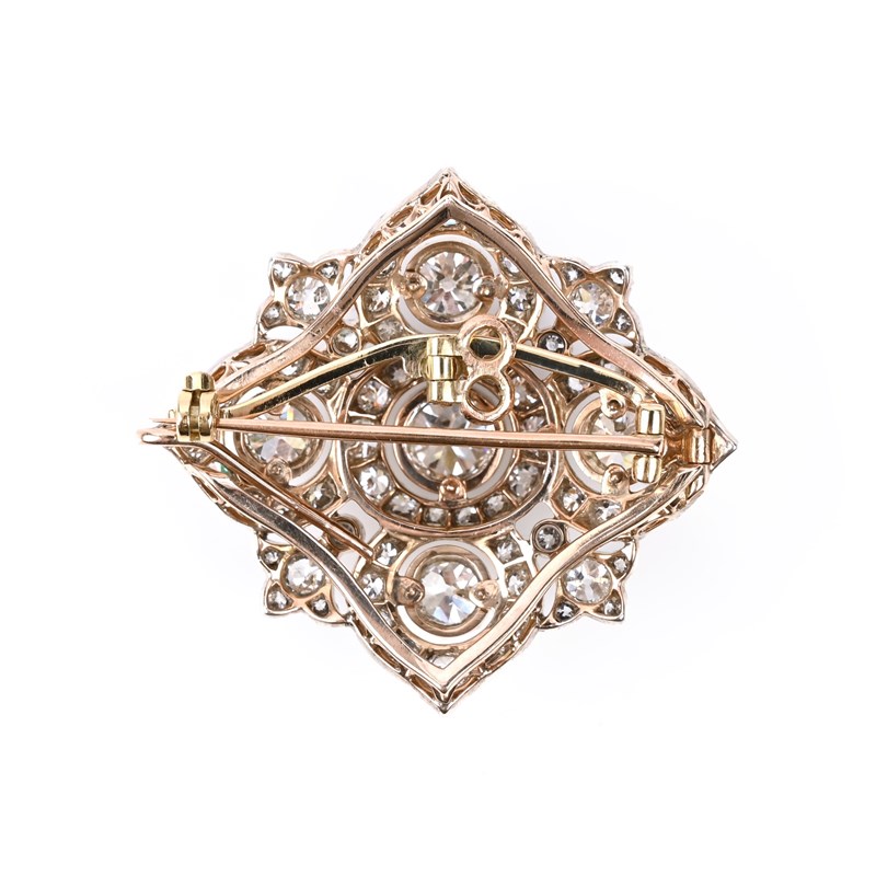 A VICTORIAN DIAMOND BROOCH, LATE 19TH CENTURY, of quatrefoil design, set with graduated old circular-cut diamonds in silver and gold, detachable brooch fitting, length 3.9cm
