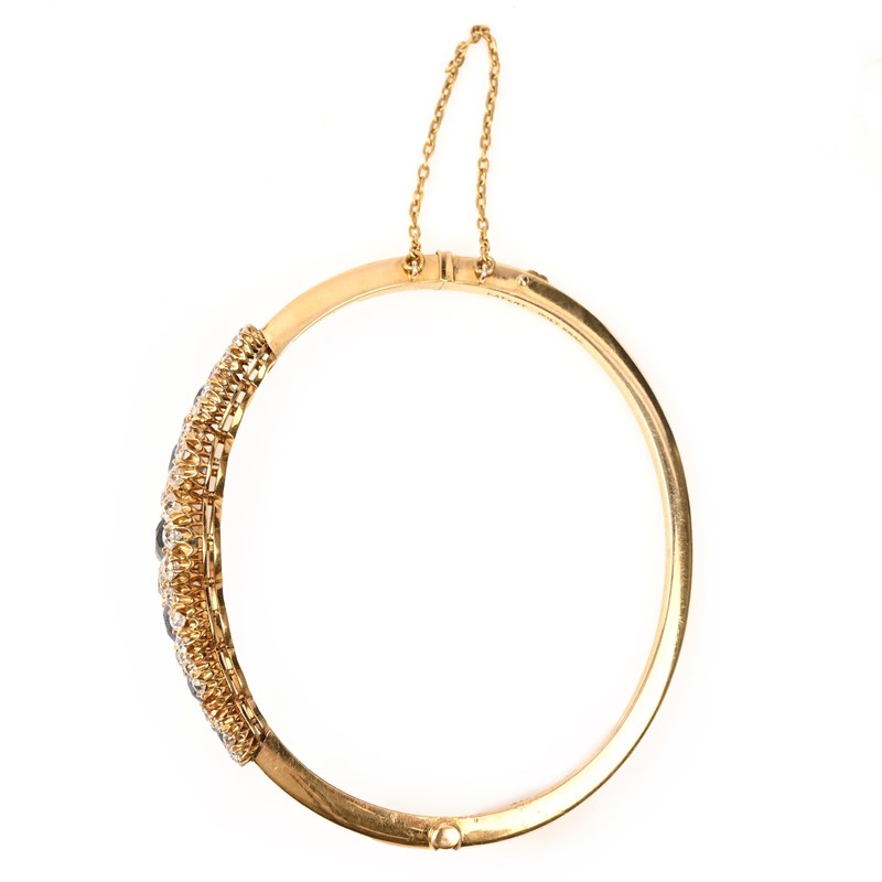 A LATE VICTORIAN SAPPHIRE AND DIAMOND HINGED BANGLE BY HENRY GRIFFITH & SONS, CIRCA 1895