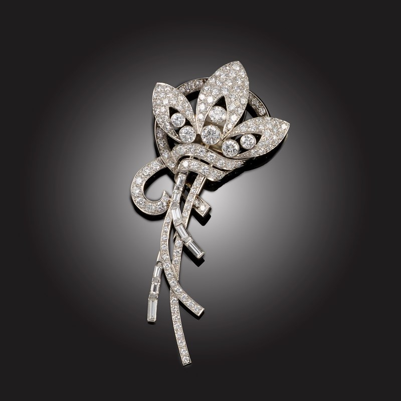 A DIAMOND SPRAY BROOCH, MID 20TH CENTURY