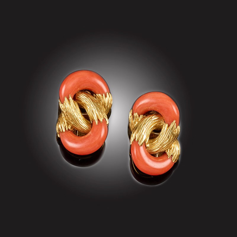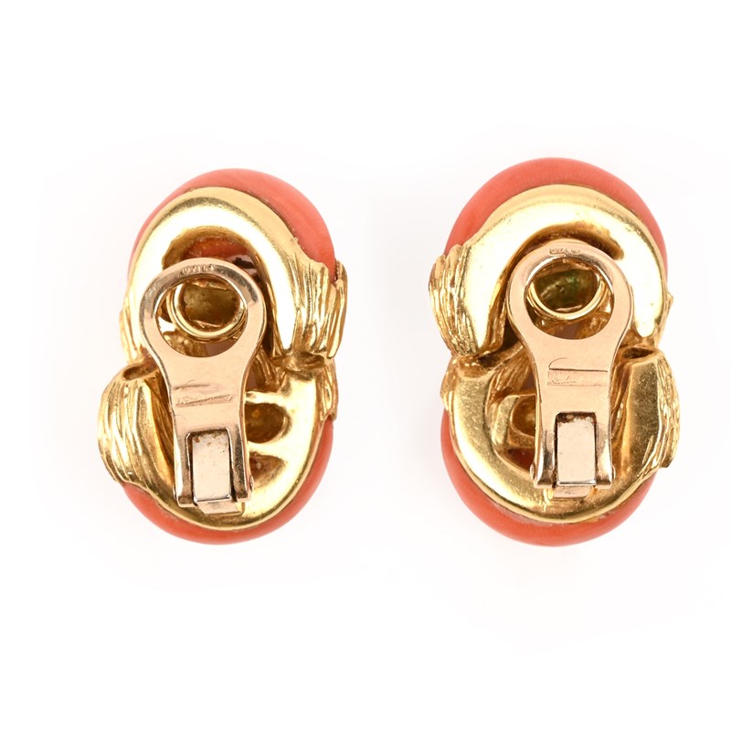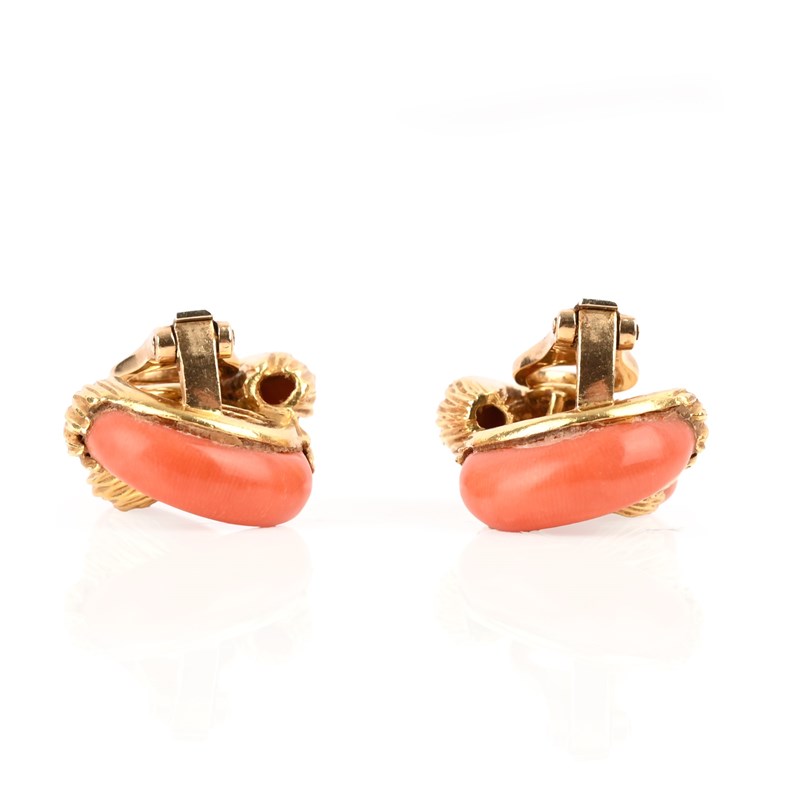 λ KUTCHINSKY, A PAIR OF CORAL AND GOLD EARCLIPS, CIRCA 1970