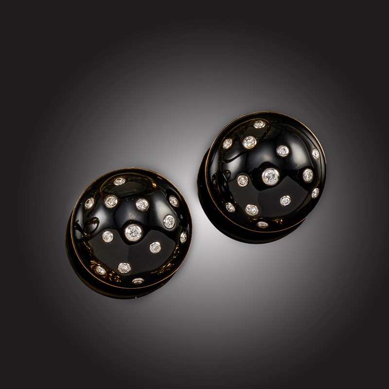 TIFFANY & CO., A PAIR OF DIAMOND AND ONYX EARRINGS, 1989