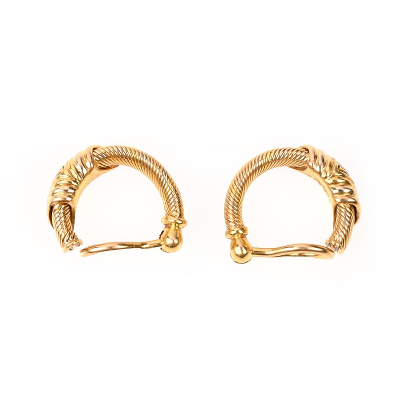 CARTIER, A PAIR OF TRI-COLOUR GOLD AND DIAMOND HOOP EAR CLIPS