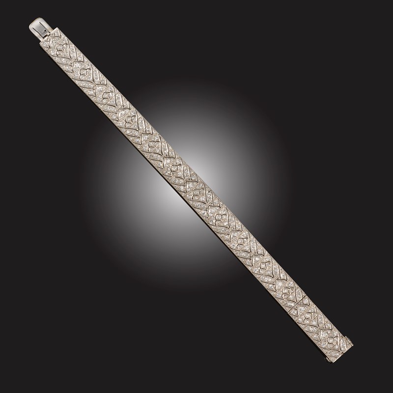 AN ART DECO DIAMOND STRAP BRACELET