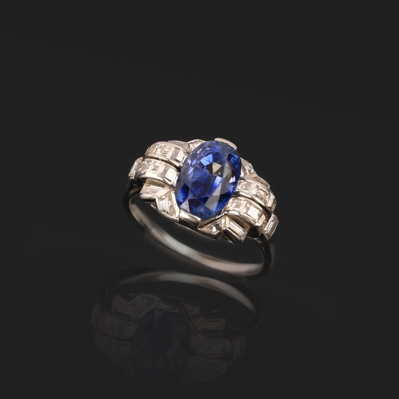 AN ART DECO SAPPHIRE AND DIAMOND RING