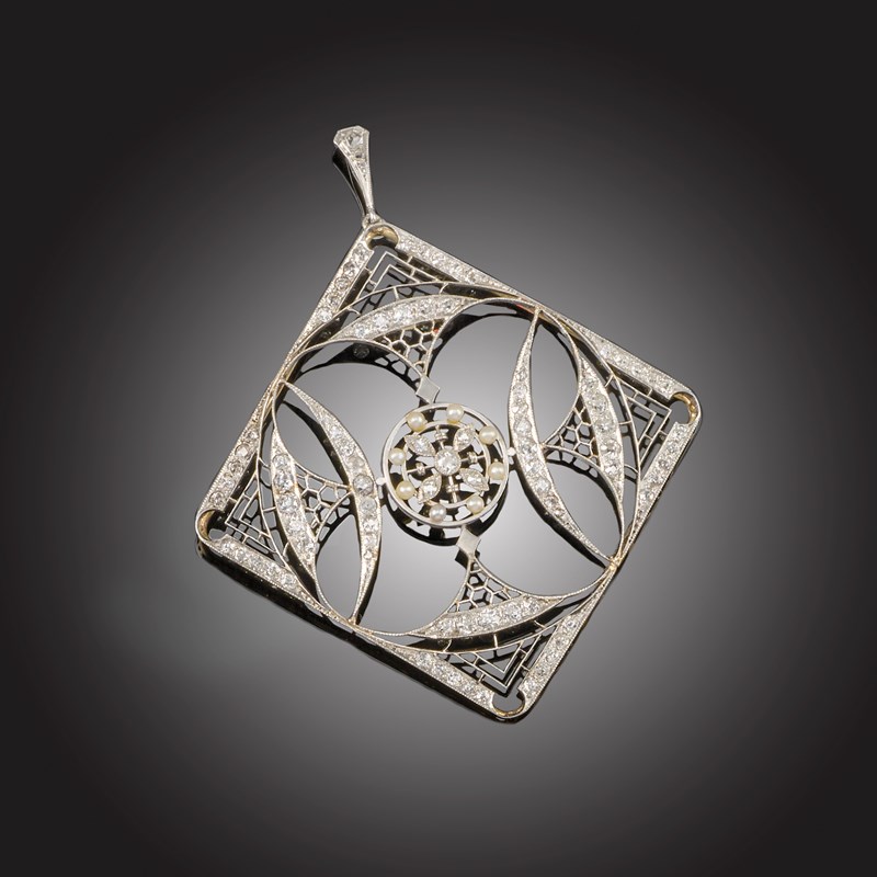 AN EDWARDIAN DIAMOND AND SEED PEARL PENDANT