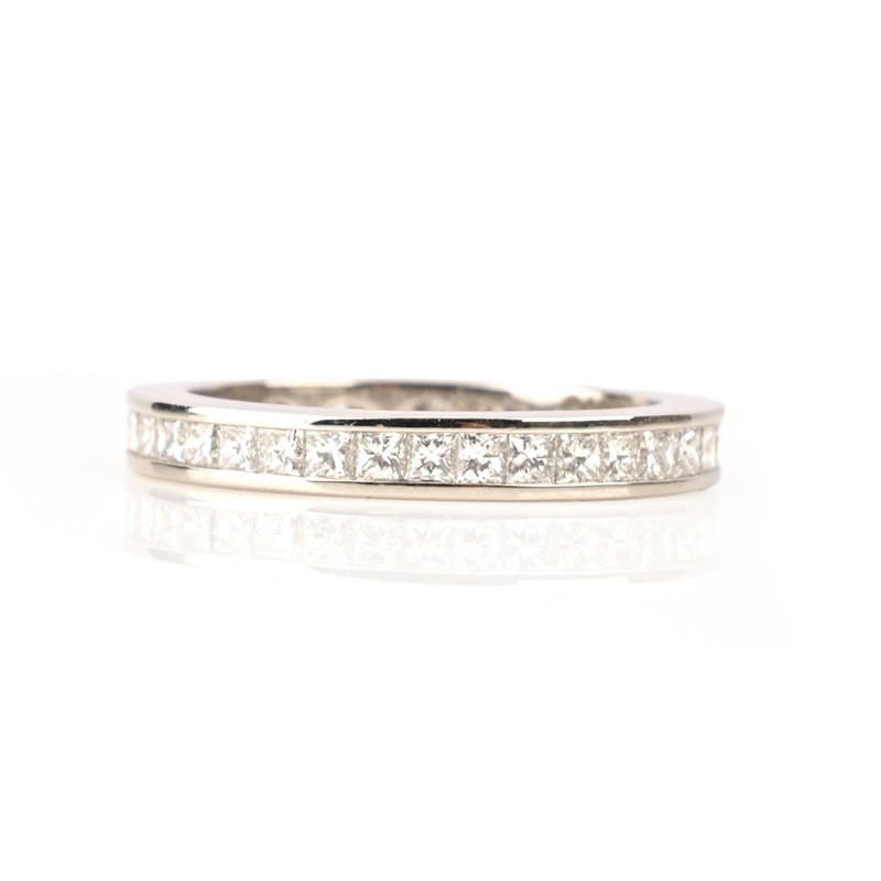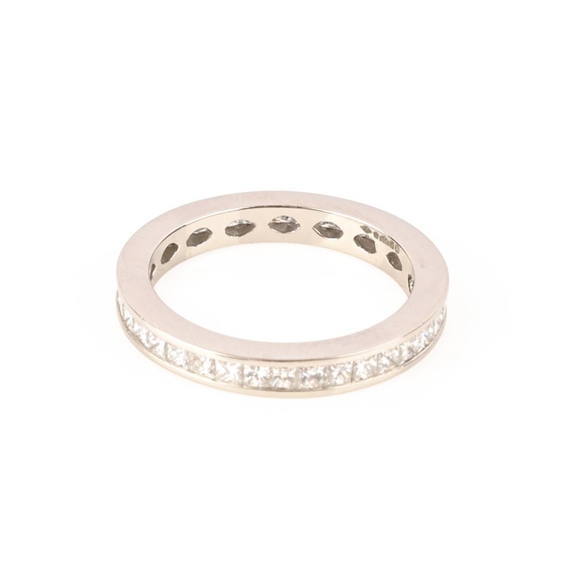 A DIAMOND ETERNITY RING, composed of a continuous row of princess-cut diamonds, channel set in platinum, London hallmarks for 2015, size N