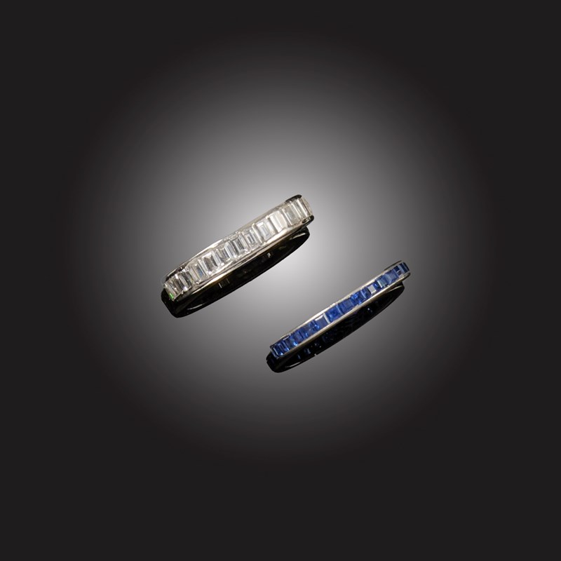 TIFFANY & CO., A SAPPHIRE ETERNITY RING WITH A DIAMOND ETERNITY RING