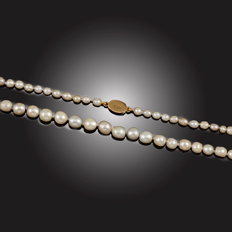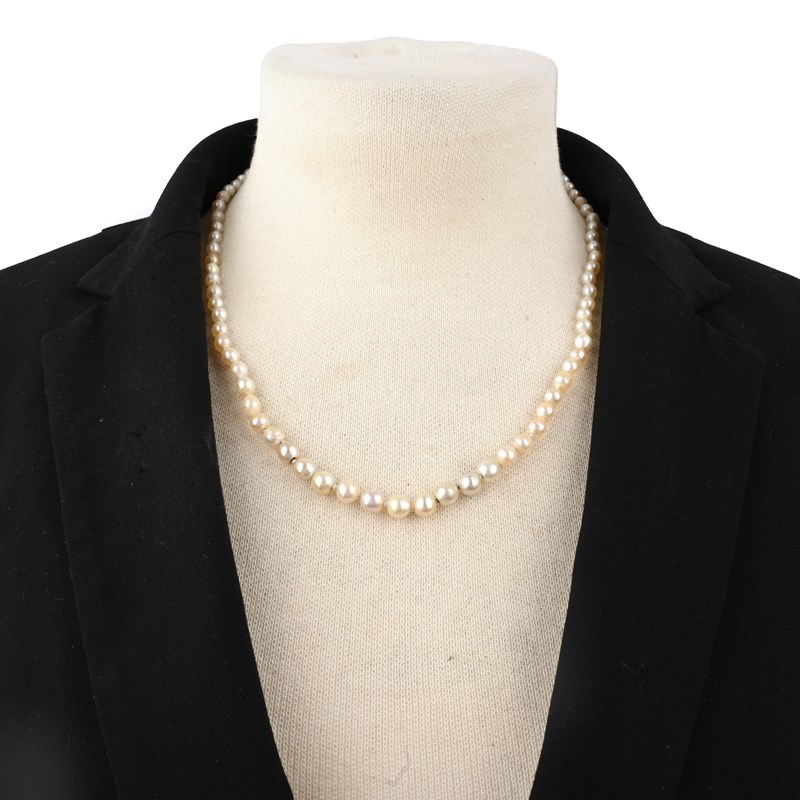 A SINGLE ROW NATURAL PEARL NECKLACE